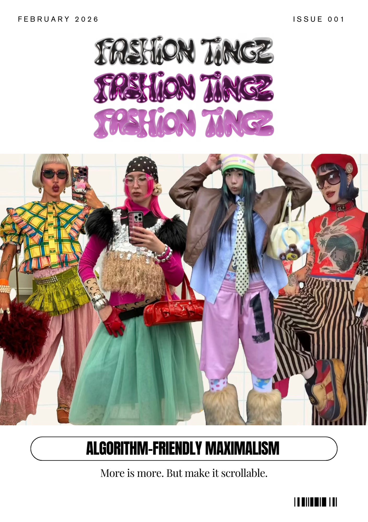 Algorithm-first maximalism is what happens when the invisible hand of the feed starts dressing us. On platforms like TikTok and Instagram, subtlety doesn’t stand a chance against the scroll; understatement is algorithmically invisible. The result? Outfits engineered less for living and more for looping.